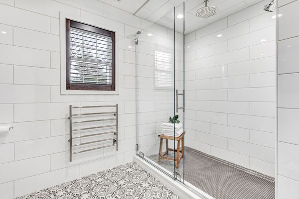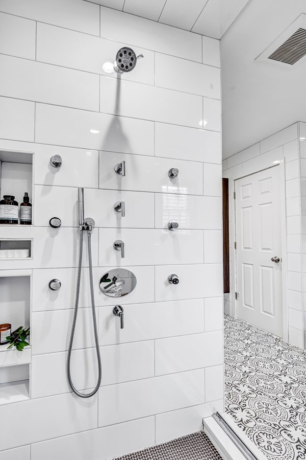 Bender supplied the fixtures, tile and bathroom accessories for this beautiful master bath renovation.