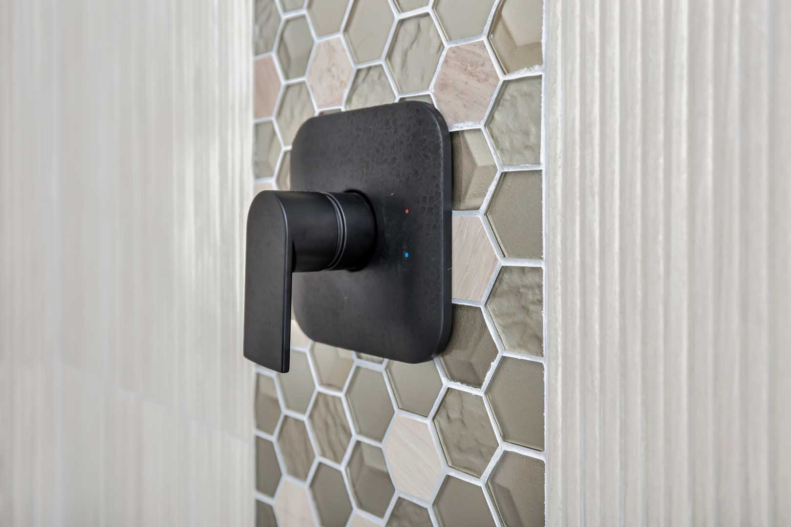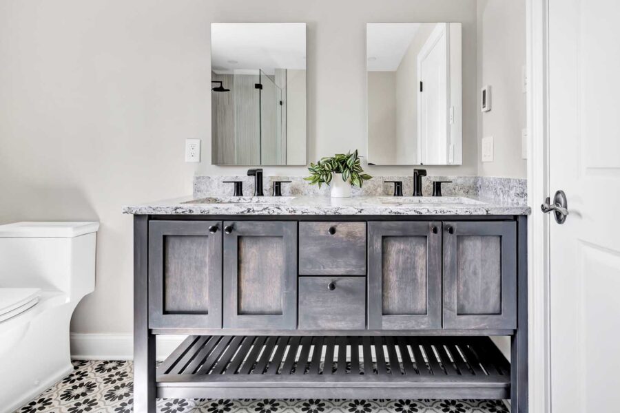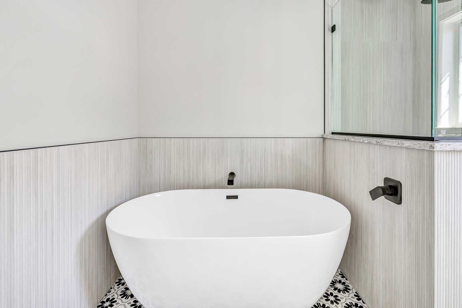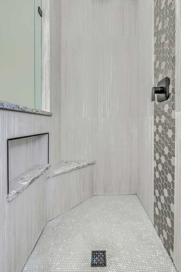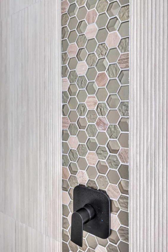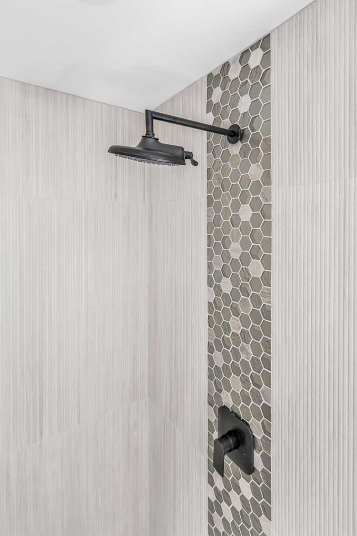 Supplying the vanity, surfaces, tile, tub, toilet, decorative plumbing, and accessories, Christina Fay worked directly with her clients to complete this gorgeous bathroom renovation.