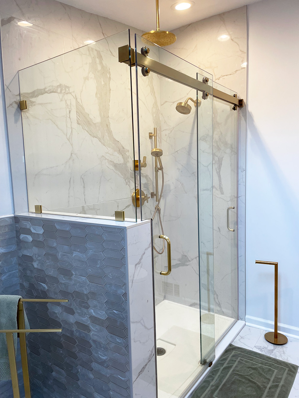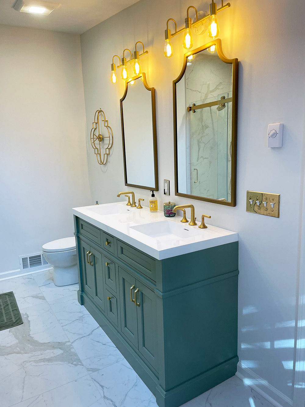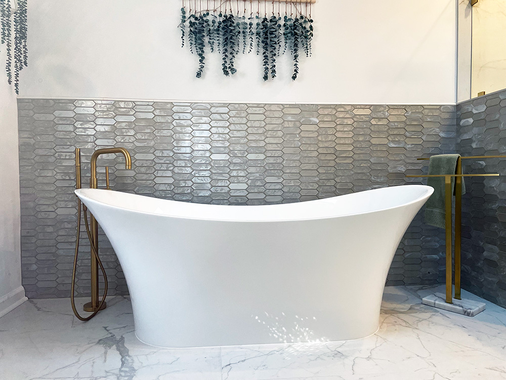 Stephanie Chirgwin worked directly with the client supplying the faucets, fixtures, cabinetry, and tub for this gorgeous bathroom remodel.